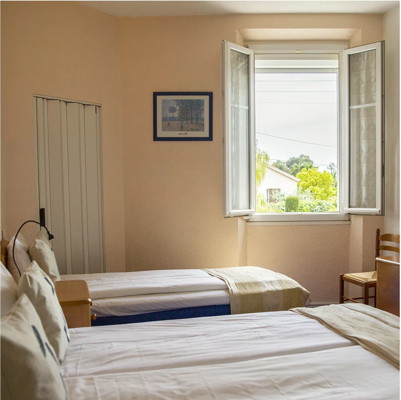 A family hotel (former Hotel Jardin des Arenas) we had in our program for years, with a new redesigned and elegant garden on the rear where breakfast is served in the morning under large white Italian tents. Very centrally located, about 300 meters from the beach and close walking distance to our classes. Cozy, very clean, with a nice homey atmosphere. No elevator but there are only three floors. All the rooms are with shower, WC, new extra flat LCD tv screens, free WIFI Internet, air conditioning, large single bed, alternatively twin beds, depending on price and availability. Two rooms with shower only are at a lower rate and have free WC in the hall. https://saintraphaelhotel.com/le-prado-de-st-raph/