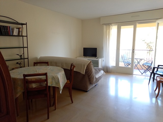 A nice , cosy and self catering apartment on the ground floor of a villa, with a huge garden and swimming-pool in the residential and elegant area of the town.Two bedrooms, one for the parents and the second for the children with a bunk bed + an folding sofa . Suitable for 3 kids ..Bathroom and laundry facilities ... Outdoor terrace for your evening meals . Next door,large room for access to French TV programs for the kids in agreement with the hostess ..The whole family has unlimited access to the swimming pool and WiFi access. About 2 km from school. A car would be needed.