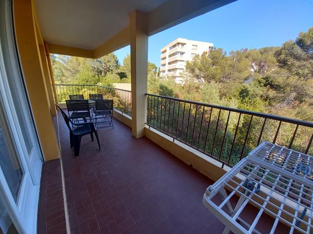 A top modern self catering apartment with all the commodities, around 60 m2, bedroom, living room with extra coach, bathroom, separated toilet, WiFi, 5 min walking distance to the beaches, to the local shopping shops with grocery store, located in Boulouris, the elegant suburb of Saint-Raphaël. On the third and last floor of a beautiful building with elevator. Two separated terraces on each side of the apartment, total surface of 25 m2 and with splendid view over green spaces. A own or rented car is a necessity 3 km from our school.